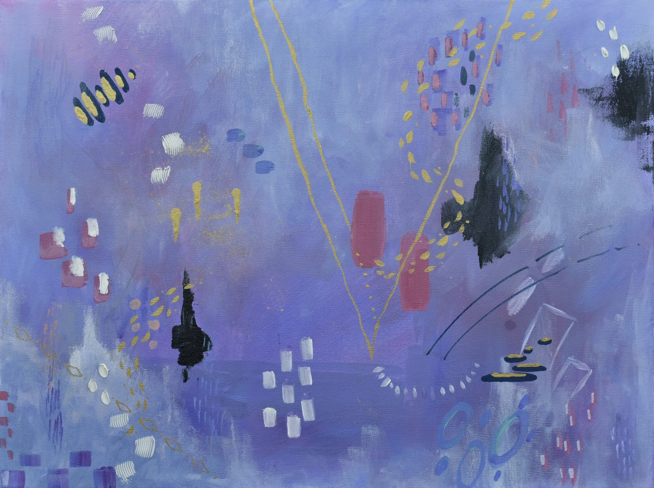Various rhythms such as flowing, progressive, and alternating are incorporated to create feelings of sprightliness. The atmospheres are serene and created with soft tonal hues yet balanced with more energetic gestures. Impasto textures add dimension to the serene, dreamy, and starry sculptural paintings.